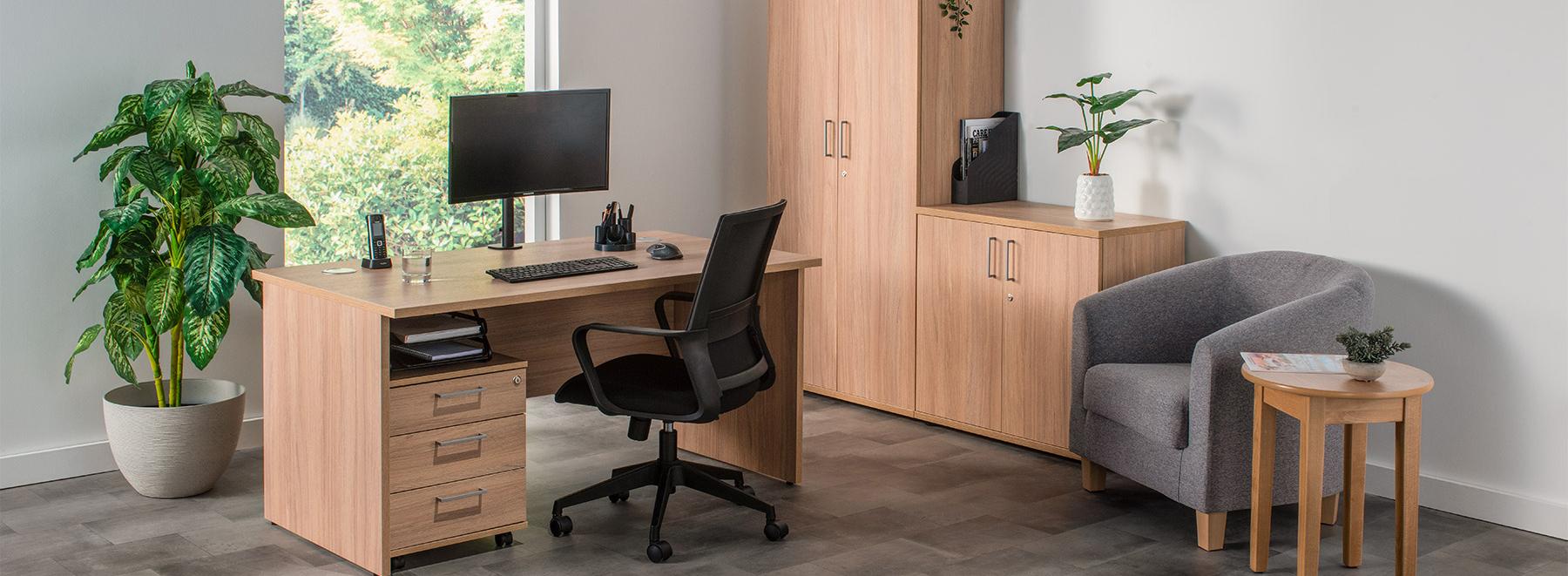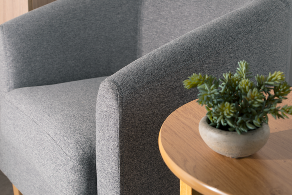 Professional yet relaxed, the mix of classy, grey upholsteries and warm, amber oak wood finishes creates a clean and sophisticated ambience.