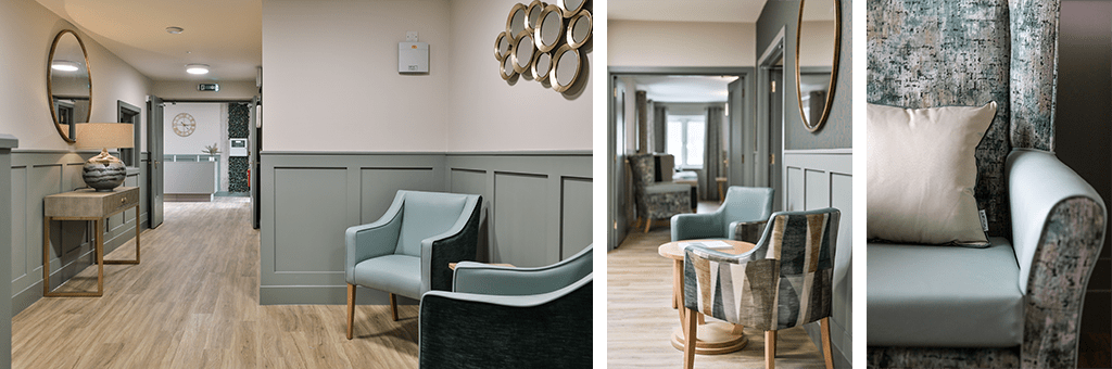 The Furncare team including Sheldon Southall, Declan Turner, Arnie Goodenough and Jade Eaglen have all contributed to The Chestnuts success story since receiving the first order in 2016. The latest chapter started in the Spring of 2024 when Declan and Arnie met with Arnas and deputy manager Stacey at the home. A few days later, Arnie returned with Furncare Project Design Manager Jade to discuss the brief, identify the interior themes and preferred fabrics.