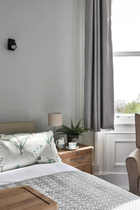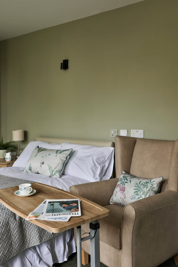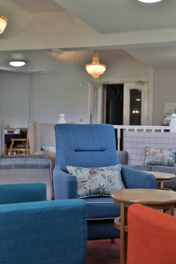 Unusually Short Timeframe Woolton Acre has been completed to exacting standards despite the unusually short timeframe available. Having acquired the property, the new owners completed the turnaround with minimum delay. In mid-December 2023, Furncare were invited to bid to furnish all 48 bedrooms and communal areas, including the lounges, dining rooms, day clinic, bar area, quiet rooms, isolation room and corridors. Look & Feel of a Bespoke Designer Solution Detailed interior design proposals were developed at Furncare and even suggested decorative specifications and lighting schematics to ensure every room was bright, light and safe. The plans had the look and feel of a bespoke designer solution, but all the care home interiors were from stock and guarantees were provided assuring delivery within days of confirmation. The contract was signed in January 2024 and all 1,831 items ordered were delivered from the Furncare National Distribution Centre. The order was installed in each room just days later in the first week of February.