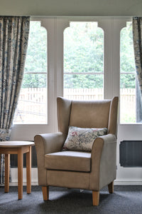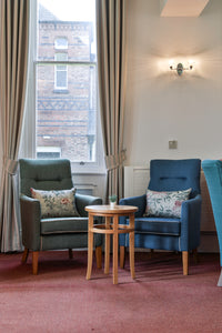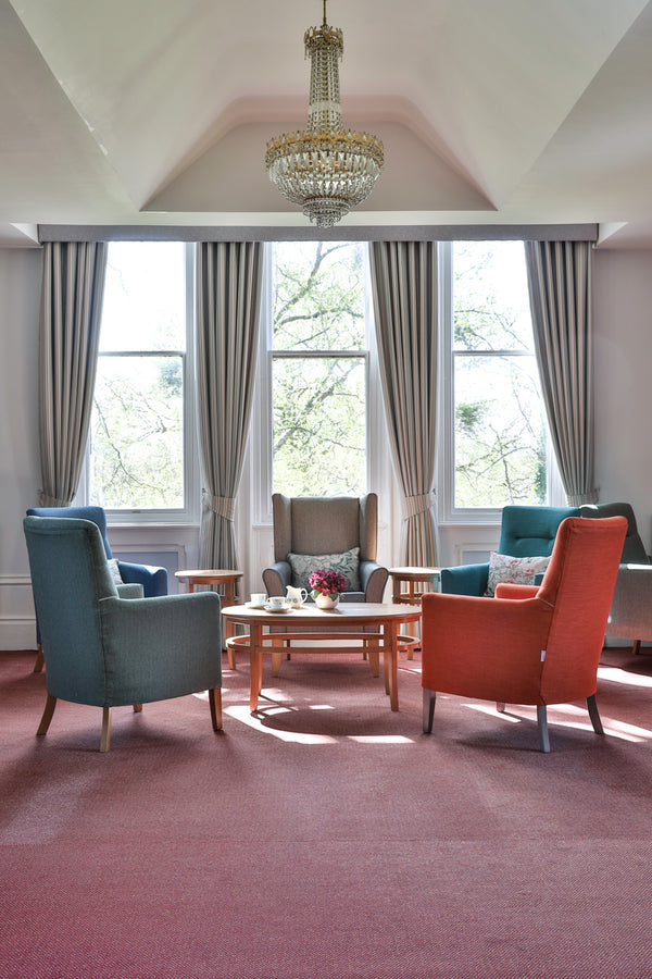 Woolton Acre is a magnificent Grade II listed manor house nestling in a beautiful woodland setting in the north west of England. It is undergoing a comprehensive refurbishment and upgrade, and Phase 1 is now fully equipped and furnished, relying heavily on Furncare care home interiors from stock.