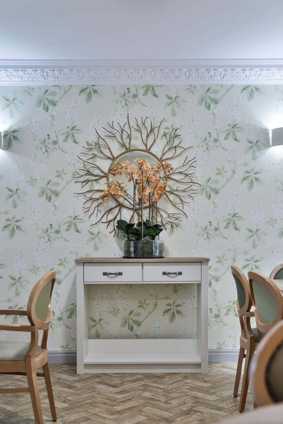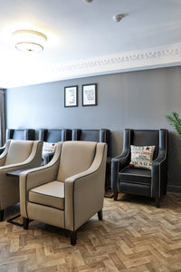 In their most recent refurbishment project, ‘Chapel View’ in South Yorkshire has been refreshed and upgraded. The Furncare Special Projects Team oversaw the project, led by Arnie Goodenough and Jade Eaglen. Although not a dedicated dementia unit itself, Chapel View compliments nearby Group dementia care homes Riverside and Field View, with support and respite care services. Having measured up and taken a comprehensive client brief during a site visit with owner and Director Andrew Wood and his father in February 2024, Furncare Project Design Manager Jade set about turning their ‘vision’ into a stylish, functional and homely care home. With the help of Molly Tinker, one of over 20 staff based at the Furncare Head Office, floorplans, room layouts, mood boards and costings were then developed. Originally inspired by bold, distinctive wall coverings in another Wood Care Group home, the final designs help to create a suitably confident yet stylish environment.