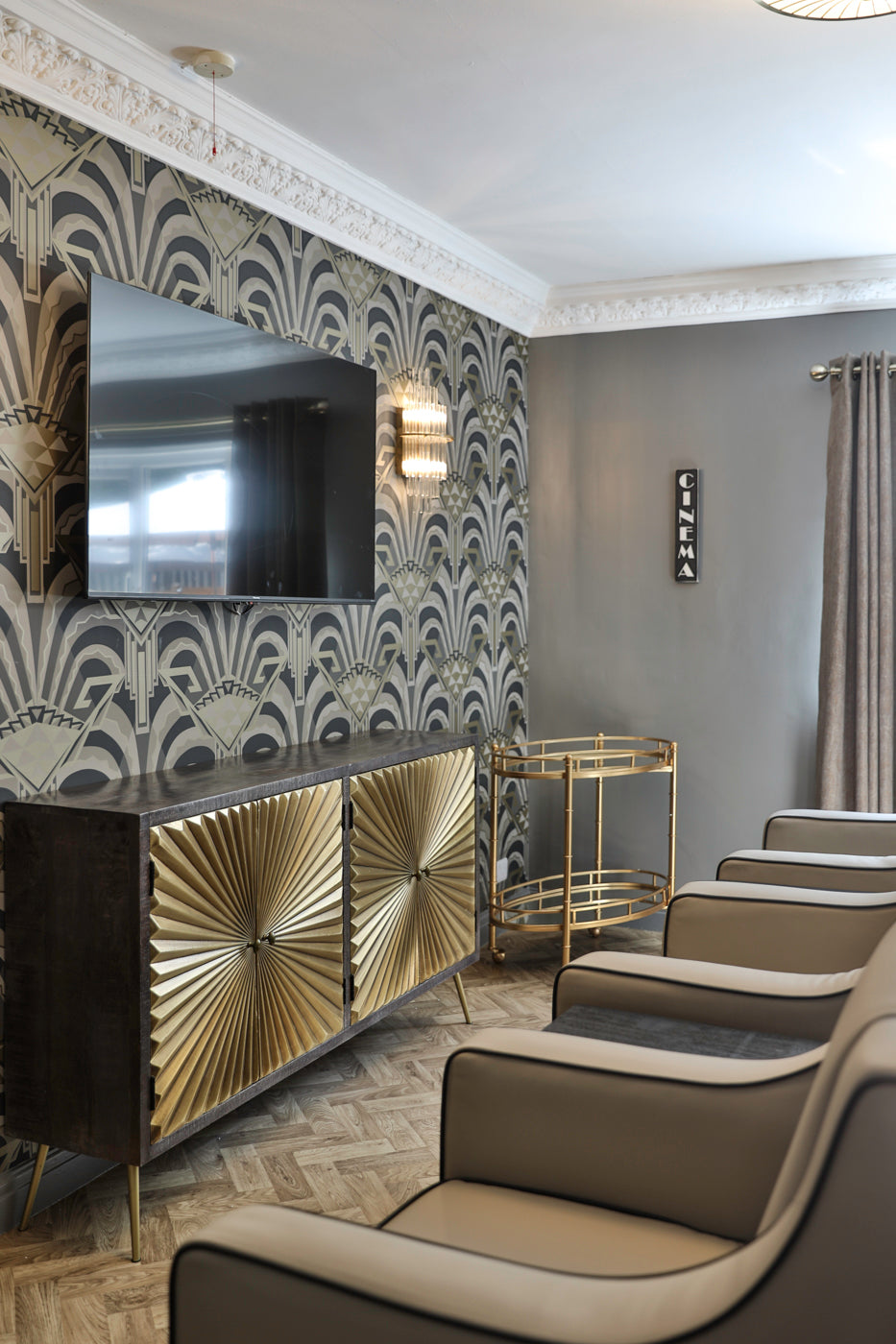 With only minor adjustments left to address, most of which were to accommodate new lighting plans, the order was signed off. Despite the bespoke requirements and tailor-made upholstery, Andrew and his sister Jenny greeted Jade and the Furncare ‘White Glove’ Team just a few weeks later when they delivered and installed the interiors – cabinet furniture, seating, curtains, blinds and soft furnishings. Delivery was scheduled by the Logistics Team and the Furncare National Distribution Centre to synchronise with the customers construction team so had to be flexible and ‘on-call’ to ensure the seamless completion of the project. Still able to accommodate further last-minute adjustments on site, the team were able to deliver and install all the lounges, the ‘Pub’, cinema and dining room in full and on schedule.