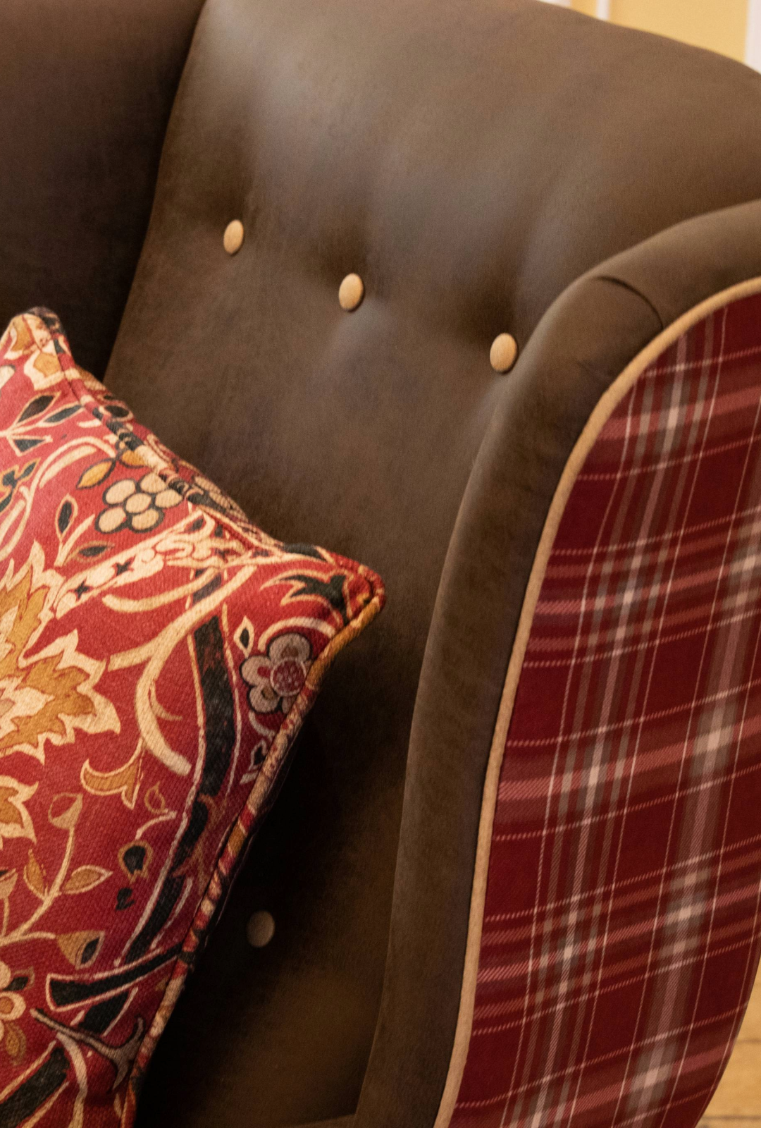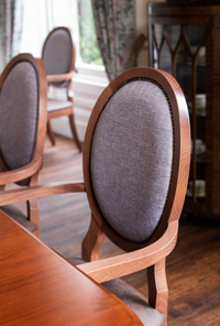 Faced with large rooms with very high ceilings to furnish, we specified our classically styled Blenheim armchair, along with the Vicky dining chair and sumptuous woven fabrics to provide some extra warmth and colour to the rooms.